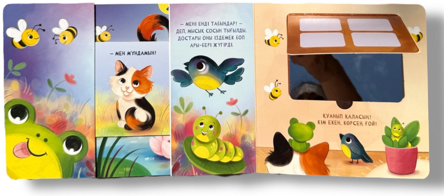 💳 Оплатить за товар можно при получении 🇰🇿 Есть бесплатная доставка по Казахстану от 1 дня 🎁 Копите бонусы с каждой покупки «Ку-ку! Жасырыспақ ойнаймыз!» — терезешелері, қозғалмалы элементтері мен айнасы бар тосынсый-кітап. 1 жастан 4 жасқа дейінгі балаларға арналған бұл интерактивті кітап оқу процесін көңілді ойынға айналдырады. Кішкентай мысық достарын гүлдер арасынан, ағаш түбінен, шөптің ішінен іздейді — әр бетте біреу тығылып отыр. Бала окошкаларды ашып, элементтерді қозғап, «кім қайда тығылды?» деп қызыға қарап шығады. Ал ең соңғы бетте мысықтың өзі жасырынады, ал терезенің ар жағынан бала... өзін көреді! Бетке орнатылған айна арқылы бұл кітап нағыз тосынсыйға айналады. |