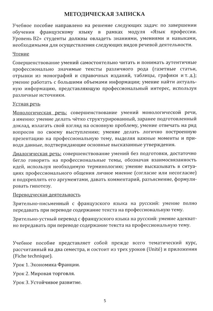 Французский язык. Язык профессии. Устойчивое развитие. Le francais professionnel. Le developpement durable. Уровень В2Елена Игоревна Иванцова, Анна Сергеевна Крылова, Светлана Робертовна Клековская В данный момент этот товар отсутствует в продаже. Возможно, у нас найдется аналогичный или похожий товар здесь. Учебное пособие предназначено для формирования коммуникативной и переводческой компетенций специалистов в области экономики и устойчивого развития. Материалы пособия затрагивают широкий спектр современных проблем в экономической сфере. Для студентов старших курсов бакалавриата ИМТУР МГИМО, изучающих французский язык. |