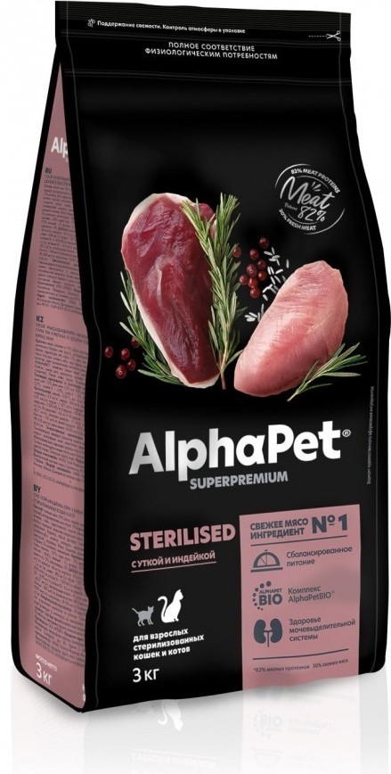 AlphaPet Корм для стерилизованных кошек с уткой и индейкой «Sterilised»