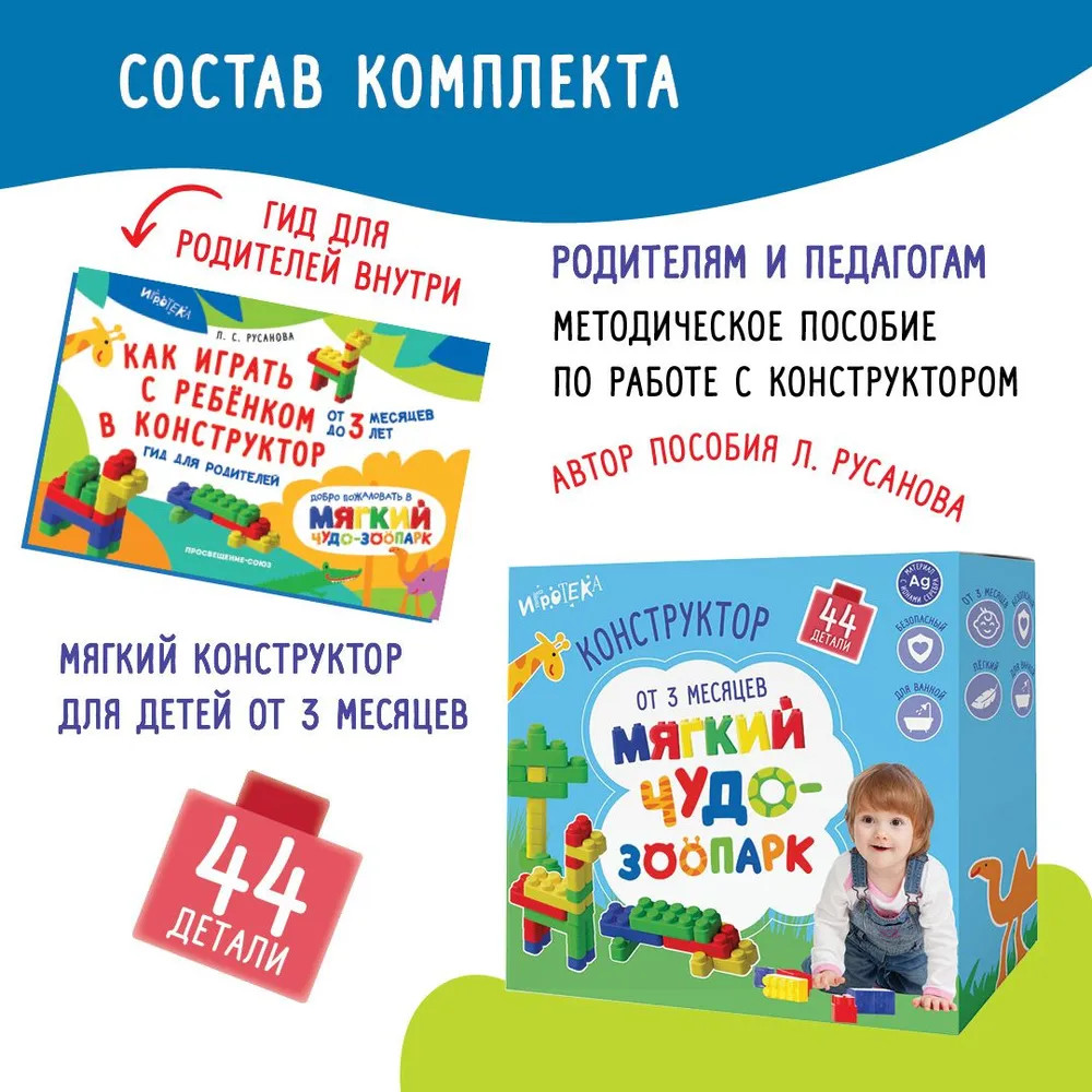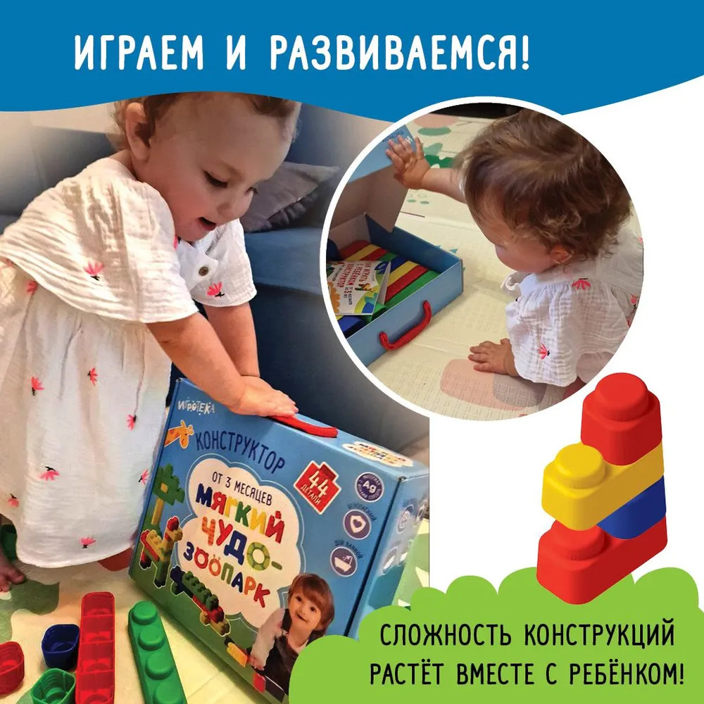 Игротека Конструктор мягкий «Чудо-зоопарк»В данный момент этот товар отсутствует в продаже. Возможно, у нас найдется аналогичный или похожий товар здесь. Деталька за деталькой у вашего малыша будут формироваться основные предметные действия: от захвата деталей и перекладывания к строительству простых построек, а затем созданию животных по образцу. Яркий, мягкий, приятный на ощупь! Этот конструктор надолго увлечёт малышей разного возраста и станет отличным тренажёром для развития рук, координации движений, пространственного мышления и воображения. |