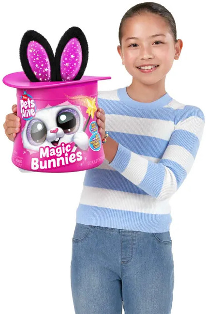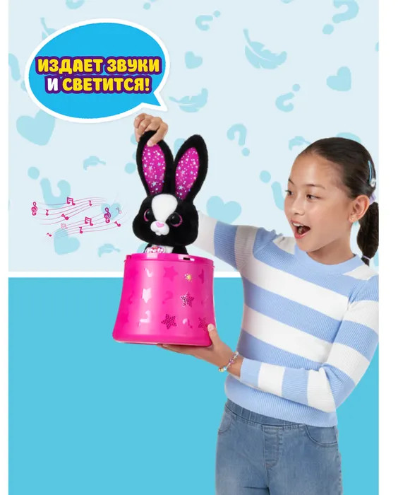 Игрушка Pets Alive Magic Bunny в непрозрачной упаковке (Сюрприз). Абракадабра! Добро пожаловать в удивительный мир магии и веселья с вашим новым волшебным игровым набором с милым кроликом! Взмахните своей волшебной звездной палочкой, и уши кролика загорятся, приглашая вас на волшебное представление. Вытащите кролика и наслаждайтесь веселым шоу с конфетти-сюрпризом! Откройте секретное отделение и узнайте, сколько маленьких волшебных мини-кроликов спрятано внутри. Более 20 интерактивных сюрпризов ждут вас в этой игрушке для девочек, чтобы принести массу веселья и удивления. Отправляйтесь в захватывающее путешествие по миру магии и развлечений с вашим волшебным кроликом - интерактивной игрушкой!