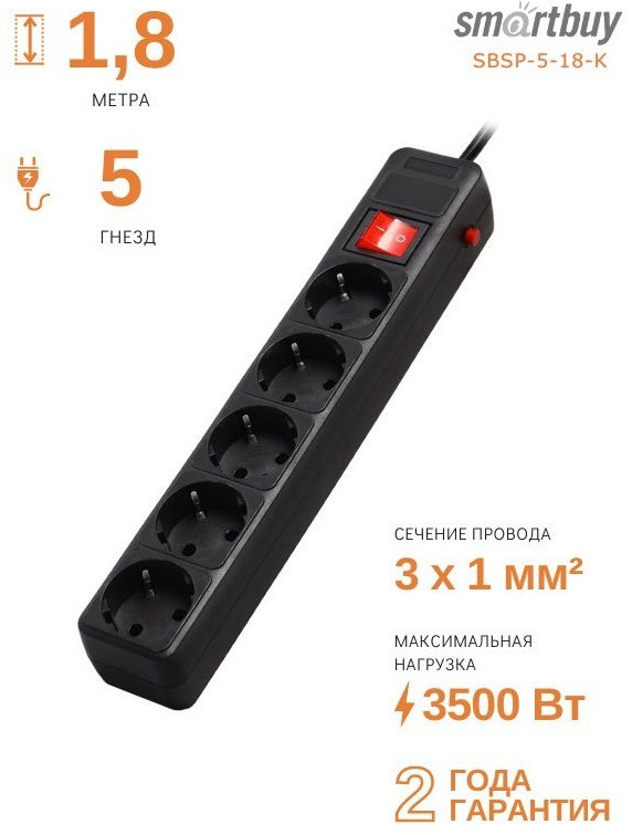 Smartbuy Сетевой фильтр SBSP-5-18-K+26