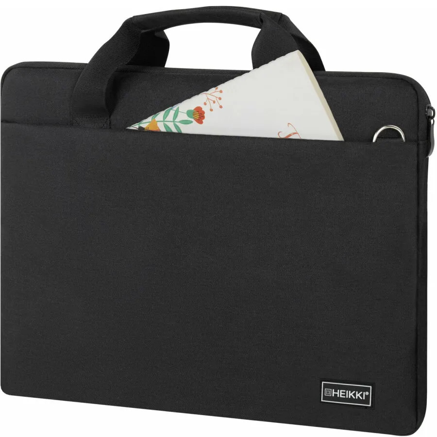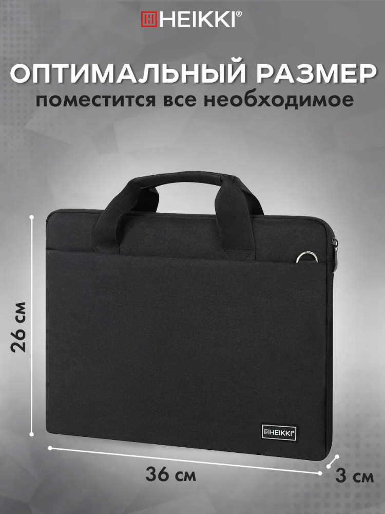 Компактная сумка Heikki Profitable с отделением для ноутбука с диагональю экрана 14'' наружными карманами. Уплотненные мягкие велюровые стенки и дно обеспечат дополнительную защиту при переноске электронного устройства, различных документов формата А4+. Наружные карманы и вместительное отделение позволяют упорядоченно разложить множество необходимых вещей помимо ноутбука. Плотные стенки и дно уплотнены толстым слоем специальной амортизирующей пены, что позволяет защитить электронное устройство от механических повреждений. 2 внешних кармана для быстрого доступа к самым необходимым вещам: передний карман на молнии, задний на липучке.