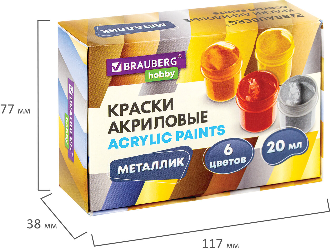 Краски поставляются в баночках объемом 20 мл с прозрачной закручивающейся крышкой и в картонной коробке с термоусадкой. Акриловые краски пригодятся в качестве канцтоваров школьникам, студентам, участникам мастер-классов, ученикам художественных школ, студий и училищ, живописных мастерских, подойдут для кастомизации. Акриловые краски Brauberg Hobby — яркий инструмент для вашего творчества! Выбирайте товары Brauberg в нашем ассортимента!