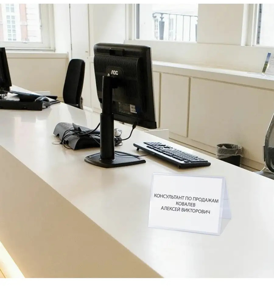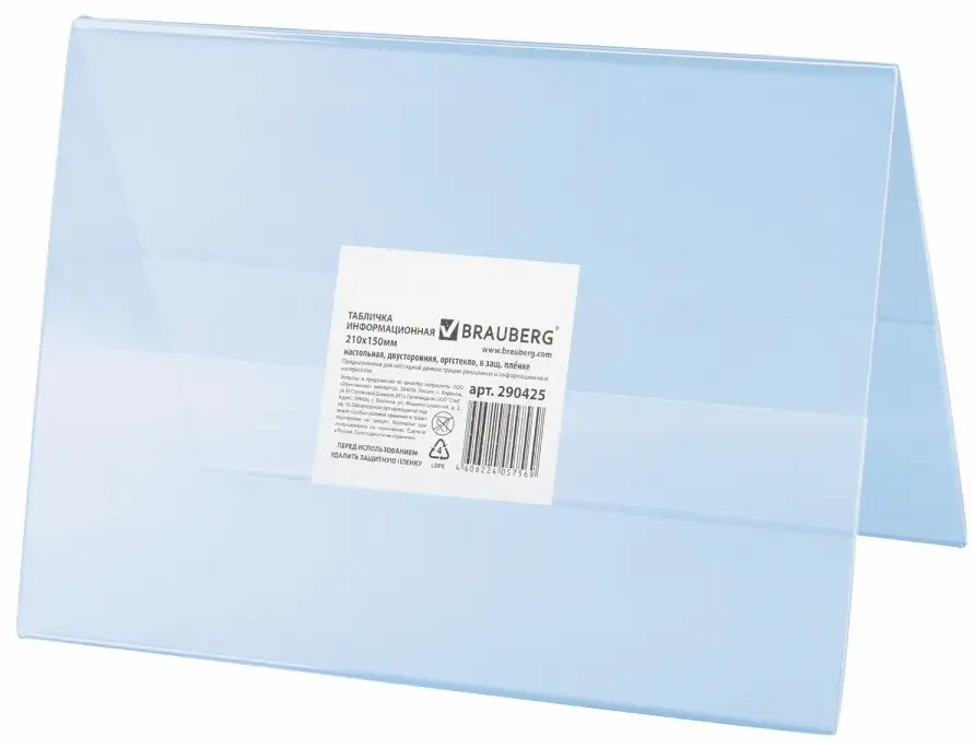 💳 Оплатить за товар можно при получении 🇰🇿 Есть бесплатная доставка по Казахстану от 1 дня 🎁 Копите бонусы с каждой покупки Серия: Standard Настольная информационная табличка Brauberg идеально подойдет для размещения меню, рекламных материалов или фамилий с должностями во время проведения переговоров или конференций. Изготовлена из прозрачного акрилового стекла. Горизонтальная двусторонняя табличка в форме «домика» предназначена для настольного размещения. Максимальная высота вставляемого листа — 150 мм, максимальная ширина вставляемого листа — 210 мм. В защитной плёнке. |
