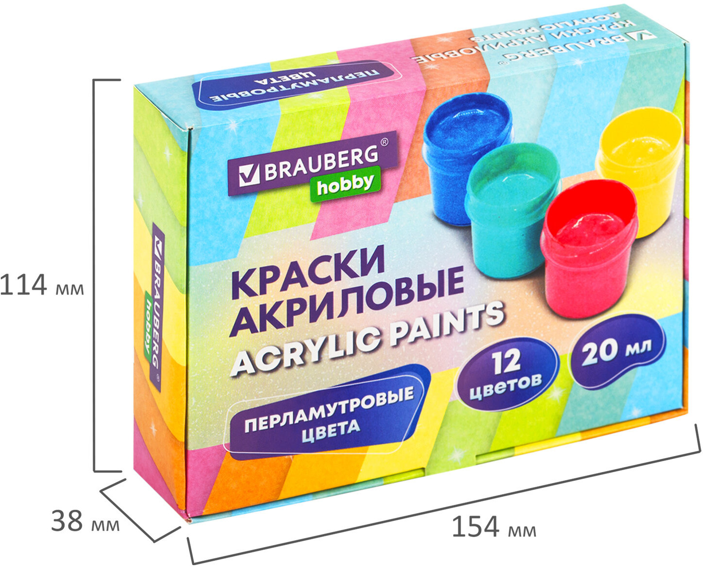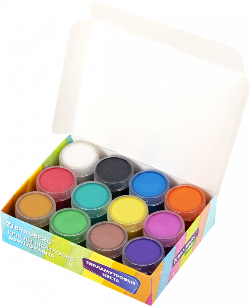 Краски акриловые Brauberg Hobby — универсальный рабочий материал для широкой гаммы увлечений. Подходят для живописных и декоративно-оформительских работ на большинстве поверхностей (бумага, картон, грунтованный холст, дерево, стекло, керамика, камень).