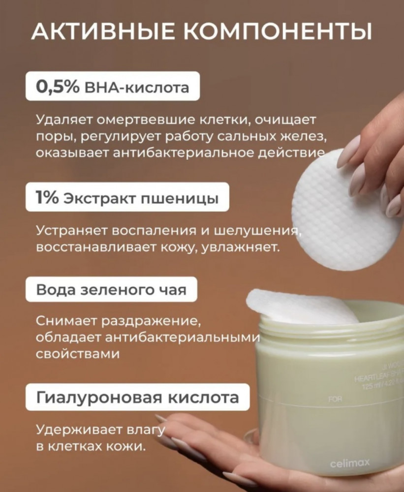 Celimax Пилинг-пэды для лица «Heartleaf BHA Peeling Pad»