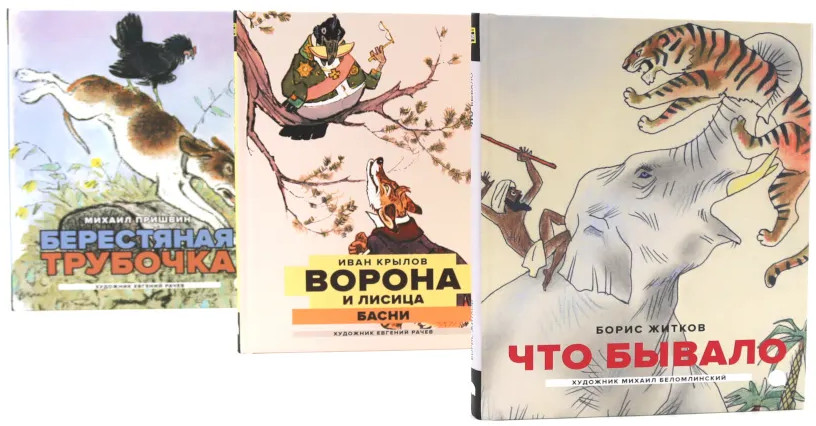 Классика детской литературы с иллюстрациями легендарных художников. Комплект из 3 книгМихаил Михайлович Пришвин, Иван Андреевич Крылов, Борис Степанович Житков +406