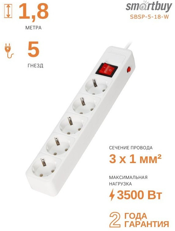 Smartbuy Сетевой фильтр SBSP-5-18-W+27
