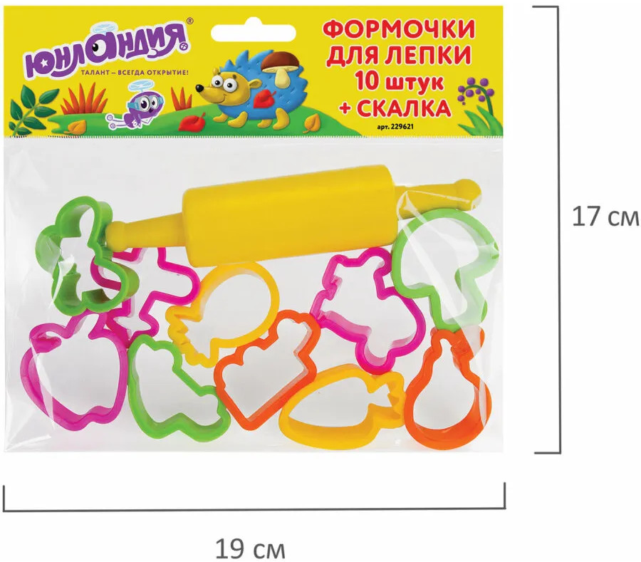 💳 Оплатить за товар можно при получении 🇰🇿 Есть бесплатная доставка по Казахстану от 1 дня 🎁 Копите бонусы с каждой покупки Набор из формочек и скалки Юнландия можно использовать для получения фигурных заготовок из пластилина, глины и теста. Набор поможет разнообразить игры с лепкой. Его можно использовать как в лепке пластилином или тестом для лепки, так и в создании кулинарных шедевров. Набор состоит из 10 разноцветных формочек и 1 скалки, изготовленных из безопасного пластика. Набор упакован в пакет с европодвесом. Предназначен для детей старше 3 лет. |