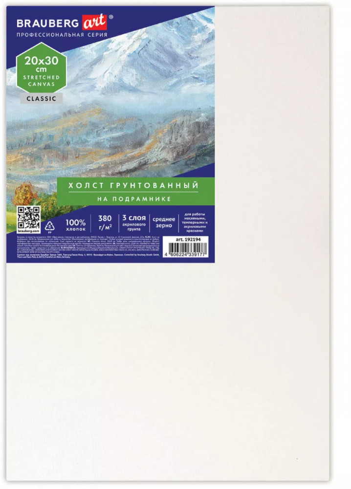 Серия: Classic Холст на подрамнике Brauberg Art Classic используется для работы масляными, темперными и акриловыми красками. Предназначен для учеников и студентов художественных школ, художников. Изготовлен из 100% хлопка плотностью 380 г/м2. Хлопковое полотно характеризуется ровной поверхностью со слабовыраженным рельефом. Среднезернистая фактура обеспечивает холсту универсальность в использовании, позволяет писать в различных техниках. Односторонний трехслойный акриловый грунт позволяет сохранить цвета неизменными, не допуская их прожухания. Холст прямоугольной формы на подрамнике полностью готов к работе.
