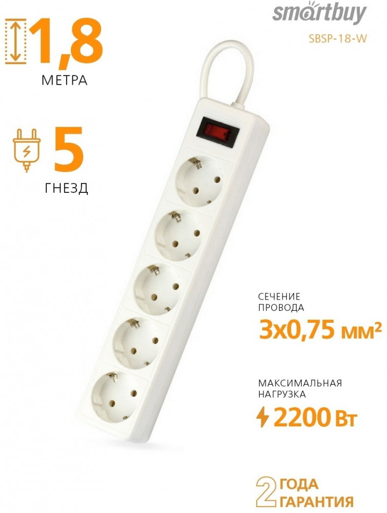 Smartbuy Сетевой фильтр One SBSP-18-W+25