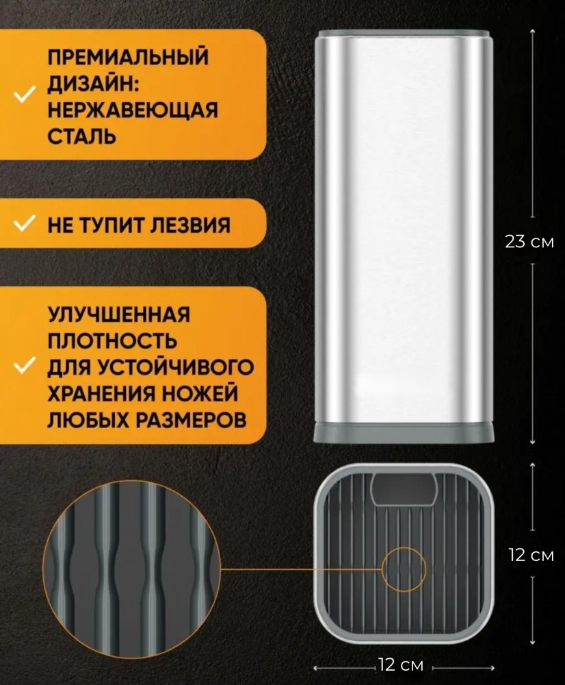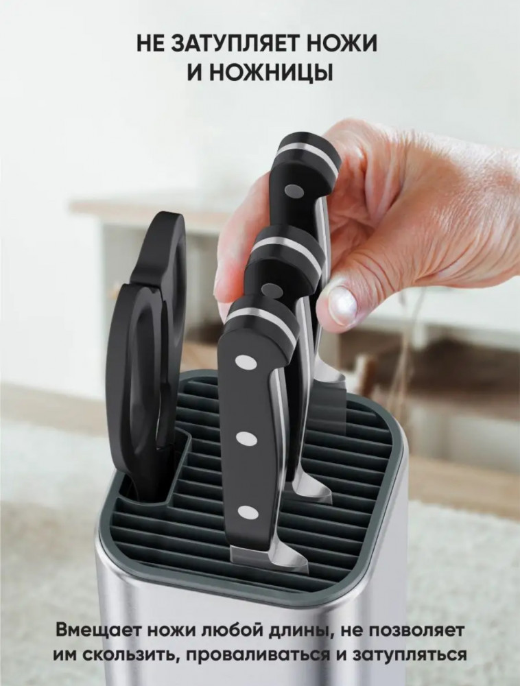 Подставка для ножей и ножницВ данный момент этот товар отсутствует в продаже. Возможно, у нас найдется аналогичный или похожий товар здесь. Порядок, как у шефа — прямо у вас дома! Профессиональная подставка для ножей и ножниц из прочной нержавеющей стали — выбор тех, кто готовит с любовью. Подходит для широких и узких лезвий, ножей для стейка, хлеба, овощей и прочего кухонного инвентаря. |