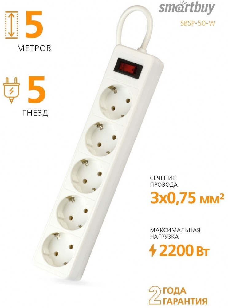 Smartbuy Сетевой фильтр One SBSP-50-W+32