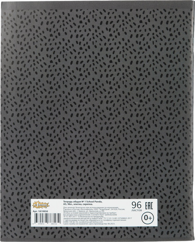 №1 School Тетрадь общаяВ данный момент этот товар отсутствует в продаже. Возможно, у нас найдется аналогичный или похожий товар здесь. Серия: Школьные товары Panda Тетрадь школьная формата А5. Обложка из импортного картона плотностью 190 г/м2. В блоке 96 листов в клетку с полями. Бумага офсетная плотностью 60 г/м2. Цвет линовки — синий. Тип скрепления — скоба. |