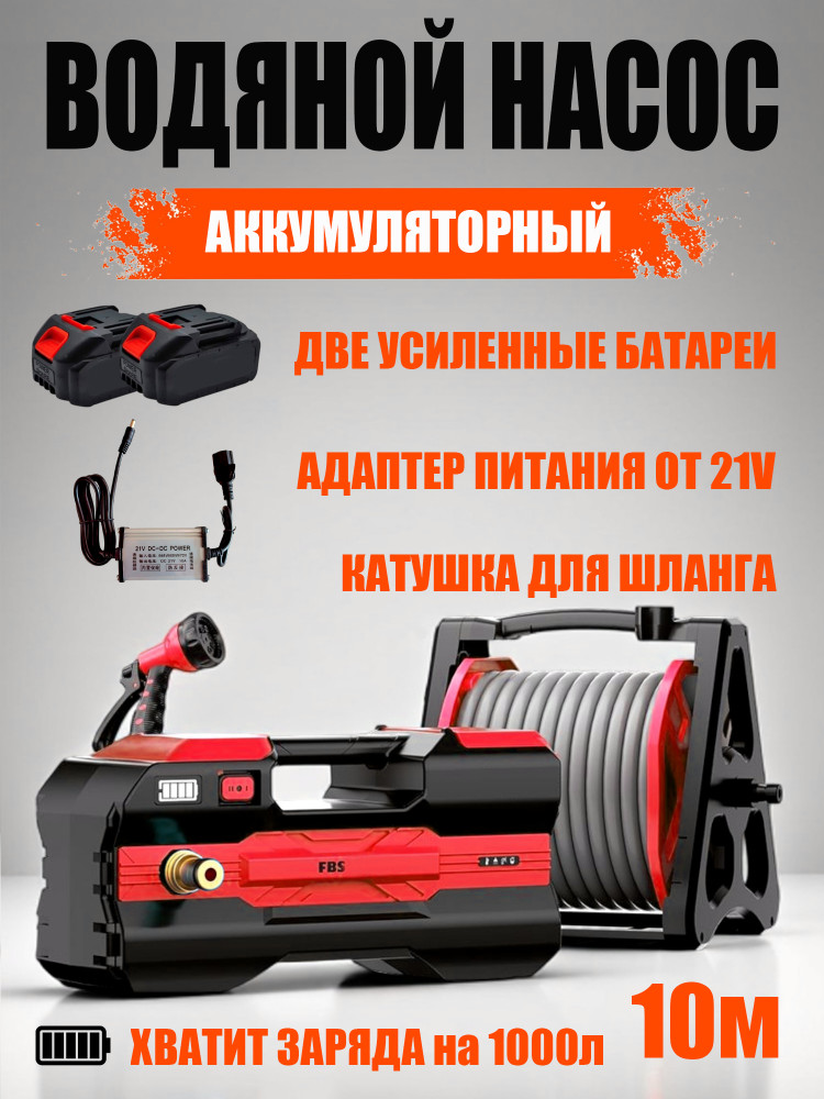 Насос для полива аккумуляторныйВ данный момент этот товар отсутствует в продаже. Возможно, у нас найдется аналогичный или похожий товар здесь. Аккумуляторный водяной насос — надёжный и мощный помощник для полива, мойки и других хозяйственных задач. Благодаря питанию от аккумулятора, он полностью автономен и не зависит от источника электроэнергии. Усиленная версия укомплектована двумя аккумуляторами, шлангами длиной 10, 20, 30 и 40 метров, удобным пистолетом-распылителем и адаптером для зарядки от 21V. Насос обеспечивает большой радиус действия и высокую мобильность, позволяя перекачивать до 1000 литров воды на одном заряде. Идеален для дачи, сада, автомобиля и любых бытовых нужд. |
