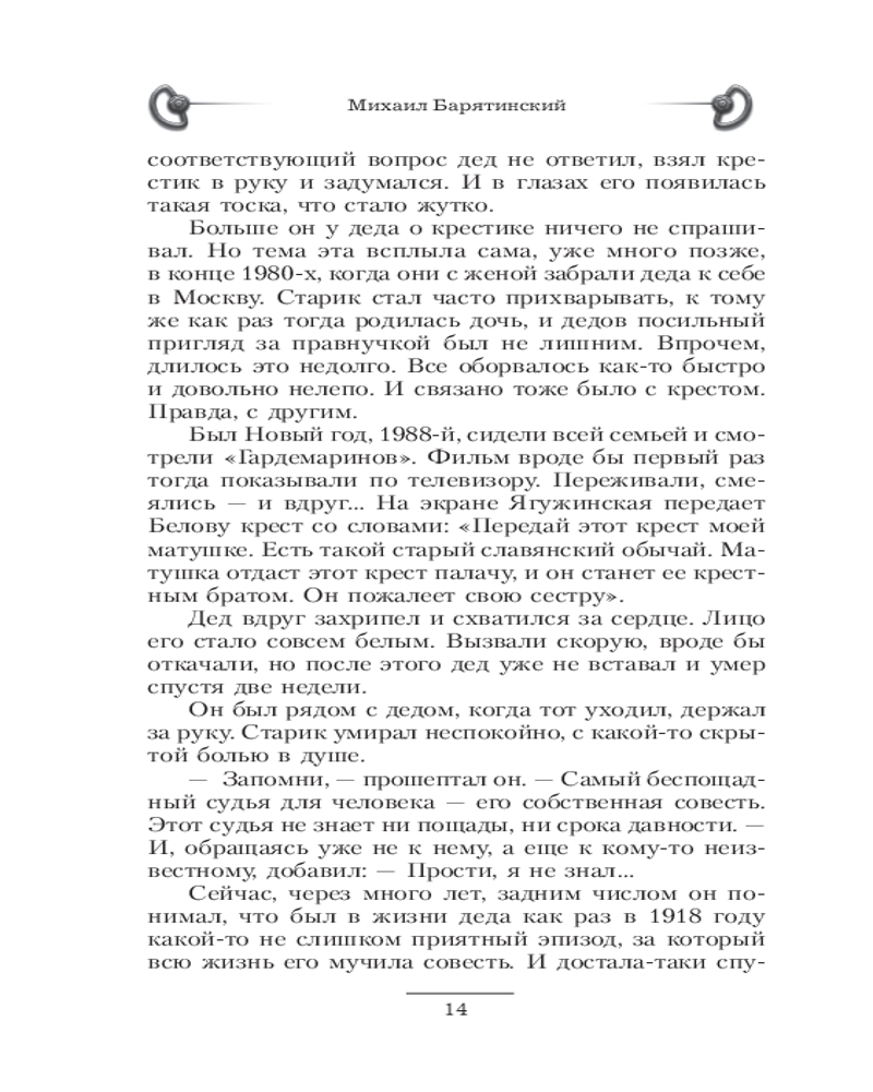 💳 Оплатить за товар можно при получении 🇰🇿 Есть бесплатная доставка по Казахстану от 1 дня 🎁 Копите бонусы с каждой покупки Серия: Попаданец Кто-нибудь верит в переселение душ? Вряд ли! Вот и главный герой этой книги не верил, пока его душа по Божьей воле (наука ведь отрицает возможность переноса сознания) не переселилась в тело его собственного деда, стоявшего в наружном карауле у дома инженера Ипатьева в Екатеринбурге в трагическую ночь на 17 июля 1918 года. Стоит ли удивляться, что наш современник смотрел на всё происходящее другими глазами. Он сделал то, чего не смог или не захотел сделать его дед, — спас от смерти великую княжну Марию Николаевну. Это и стало своего рода точкой поворота — история России в ХХ веке пошла по совершенно иному пути. |