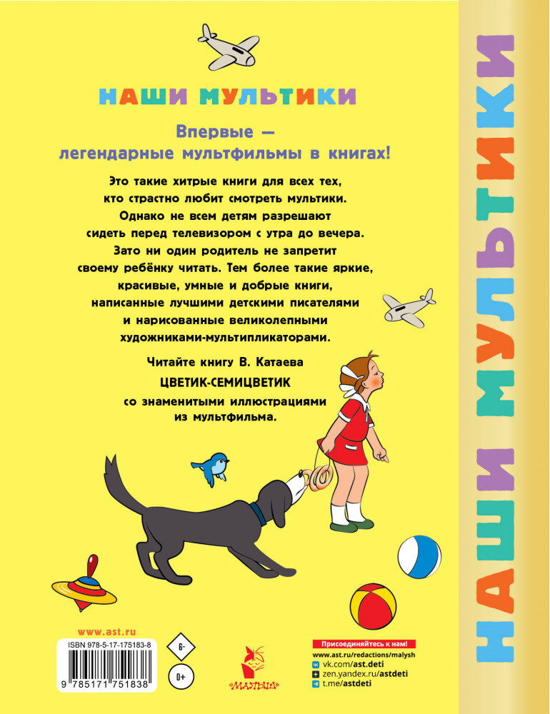 💳 Оплатить за товар можно при получении 🇰🇿 Есть бесплатная доставка по Казахстану от 1 дня 🎁 Копите бонусы с каждой покупки Серия: Наши мультики В 1940 году Валентин Катаев написал сказку «Цветик-семицветик», посвятив её своему другу, писателю Борису Левину, и «думая о том, как надо жалеть людей». По сюжету девочка Женя получает в подарок цветок с семью лепестками, каждый из которых может исполнять желание. Шесть лепестков Женя растратила на пустяки, а благодаря седьмому лепестку она смогла исцелить хромого мальчика Витю. Так у Жени появился замечательный друг. |