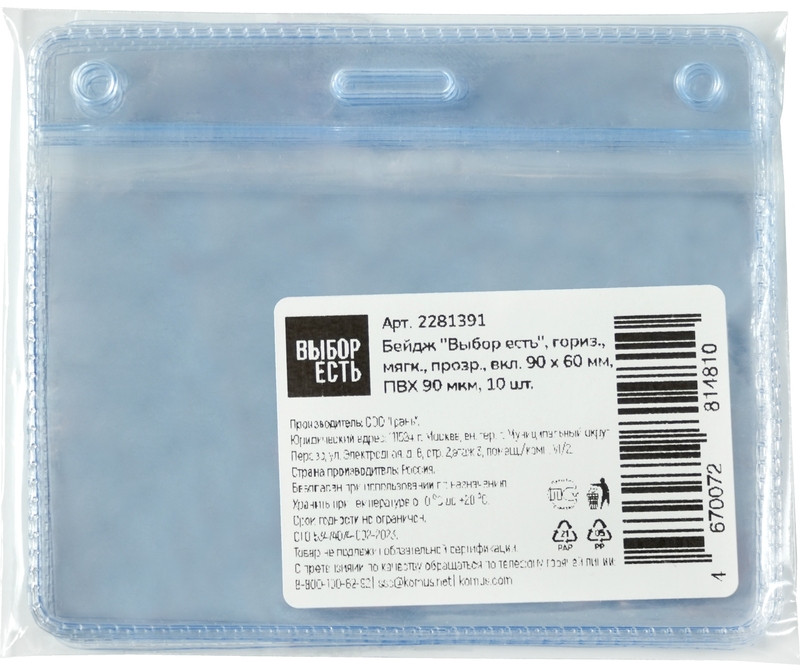 💳 Оплатить за товар можно при получении 🇰🇿 Есть бесплатная доставка по Казахстану от 1 дня 🎁 Копите бонусы с каждой покупки Бейдж Выбор Есть, горизонтальный, изготовлен из прозрачного гладкого пластика, плотность 90 мкм. Размер бейджа — 95×80 мм. Размер вставки — 90×60 мм. Подходит для ношения именных карточек и пропусков на держателе с рулеткой, зажимом или тесьмой. |