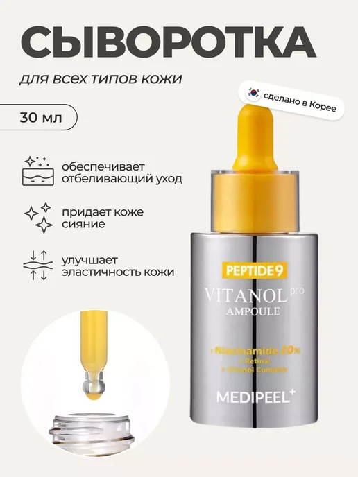 Medi Peel Лифтинг-ампула с пептидами и ниацинамидом «Vitanol Ampoule PRO»