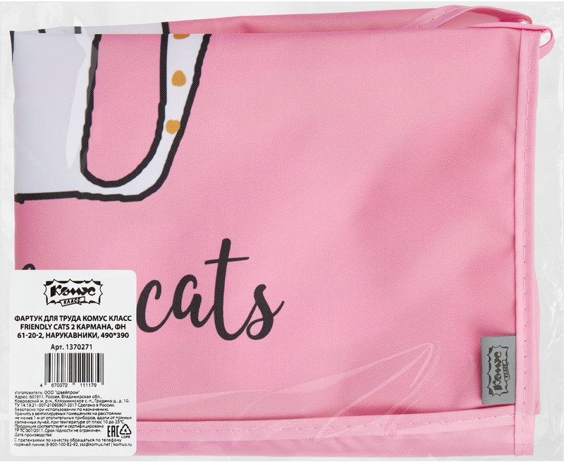 Комус Класс Фартук для уроков труда и рисования с нарукавниками и карманами «Friendly cats»-25% +62