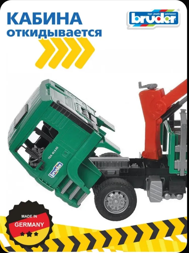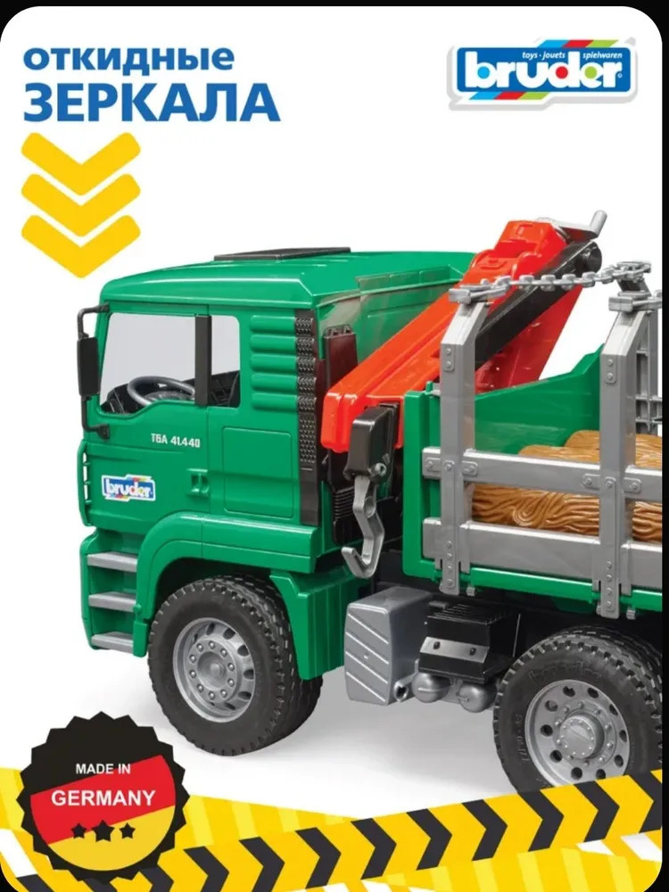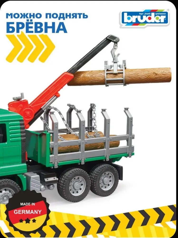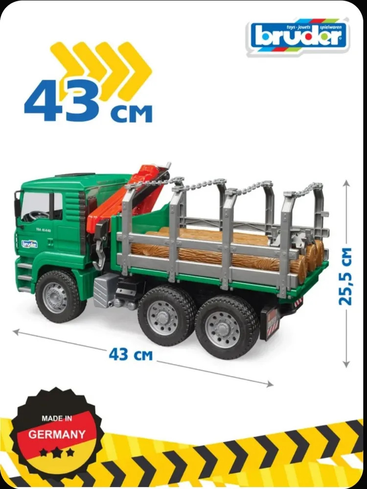 Лесовоз «Макс» с портативным краном и бревнами. Каждый мальчик с огромным интересом относится к строительной технике, особенно крупногабаритной. Популярный немецкий производитель Bruder в точности создал уменьшенный прототип оригинального лесовоза с портативным краном и бревнами. Яркий, функциональный, с возможностью крепить бревна, открывать двери, вращать кран, он приведет вашего кроху в восторг, а также идеально подойдет для сюжетно-ролевых игр.