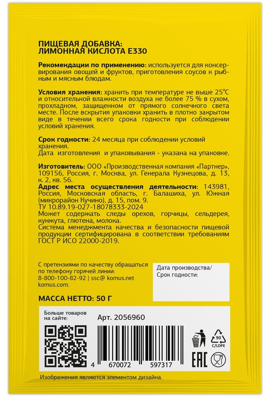 Рекомендации по применению: используется для консервирования овощей и фруктов, приготовления соусов к рыбным и мясным блюдам.