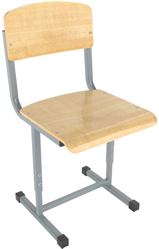 Сиденье и спинка изготовлены из гнутоклееной фанеры толщиной не менее 8 мм, покрыты бесцветным лаком. Металлический каркас выполнен из профиля квадратного сечения 25×25 мм и 20×20 мм с толщиной стенок не менее 1.2 мм и покрыт порошковой краской, стойкой к химическим и механическим воздействиям. На свободных концах труб установлены заглушки из ударопрочных полимеров. Каркас стула имеет полимерные подпятники, предотвращающие повреждение напольного покрытия. Сиденье и спинка крепятся к основанию при помощи мебельных болтов и гаек. Регулировка высоты осуществляется с помощью винтовых соединений с гайкой Эриксона. Вся крепежная фурнитура на металлокаркасах скрыта внутри трубы для продления срока службы изделия. Стул имеет цветовую маркировку в соответствии с ростовыми группами. У данного стула ростовая группа 3-5.