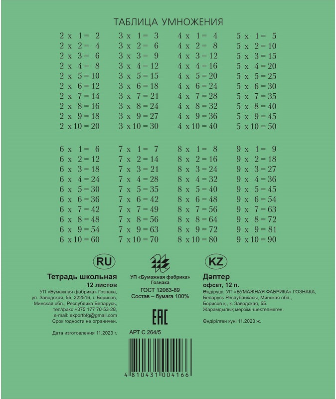 Бумажная фабрика Гознака Комплект тетрадей школьныхВ данный момент этот товар отсутствует в продаже. Возможно, у нас найдется аналогичный или похожий товар здесь. Тетрадь школьная зеленая Гознак формата А5, 12 листов в клетку (20 штук в упаковке). Обложка — бумага, плотность 80 г/кв.м, внутренний блок — офсетная бумага. Белизна — более 96%. Цвет линии — синий. Скрепляется тетрадь двумя проволочными скобами слева. |