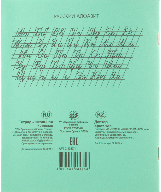 💳 Оплатить за товар можно при получении 🇰🇿 Есть бесплатная доставка по Казахстану от 1 дня 🎁 Копите бонусы с каждой покупки Тетрадь школьная зеленая Гознак формата А5, 12 листов в линейку (20 штук в упаковке). Тетрадь школьная от БФ Гознака — это отличный выбор для школьников и студентов, которые ищут качественную и недорогую тетрадь для записей. Удобный формат А5 (17×20.5 см). 12 листов — оптимальный объем для изучения отдельных тем или краткосрочных проектов. Качественная бумага плотностью 60 г/кв.м предотвращает проступание чернил (внутренний блок — офсетная бумага-2). Четкая синяя линейка поможет писать ровно и аккуратно. А приятный зеленый цвет обложки создает рабочую атмосферу. Белизна 65%. Не включает крепление, отверстия для прошивки, перфорацию и фиксирующую резинку. |