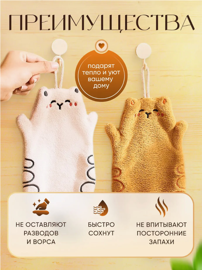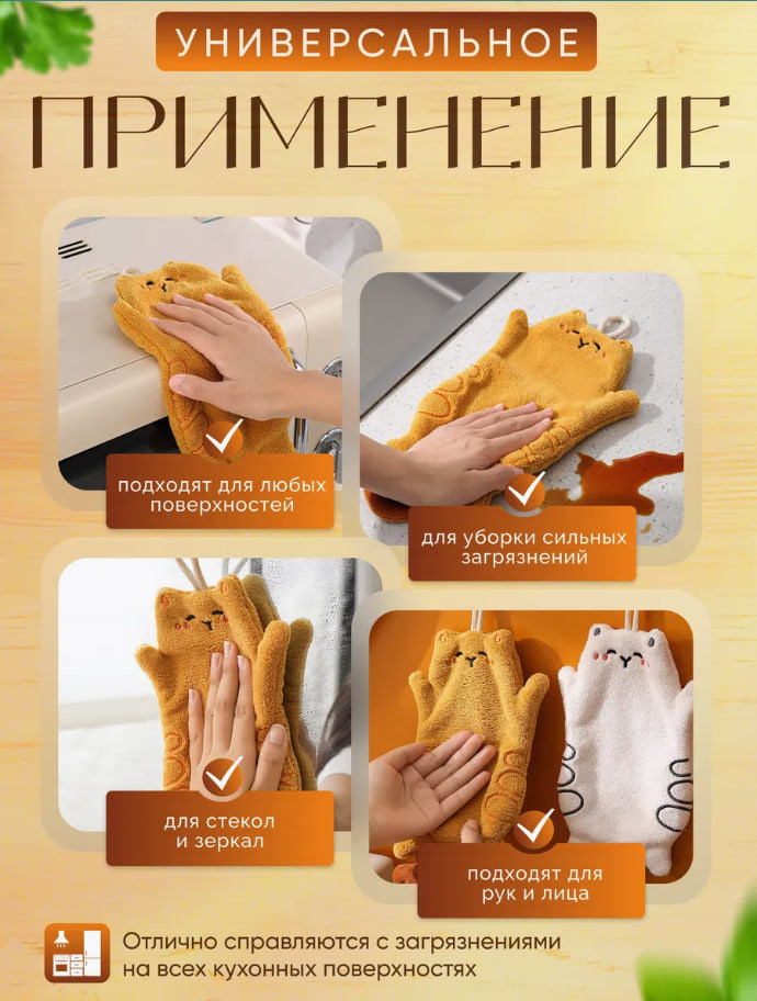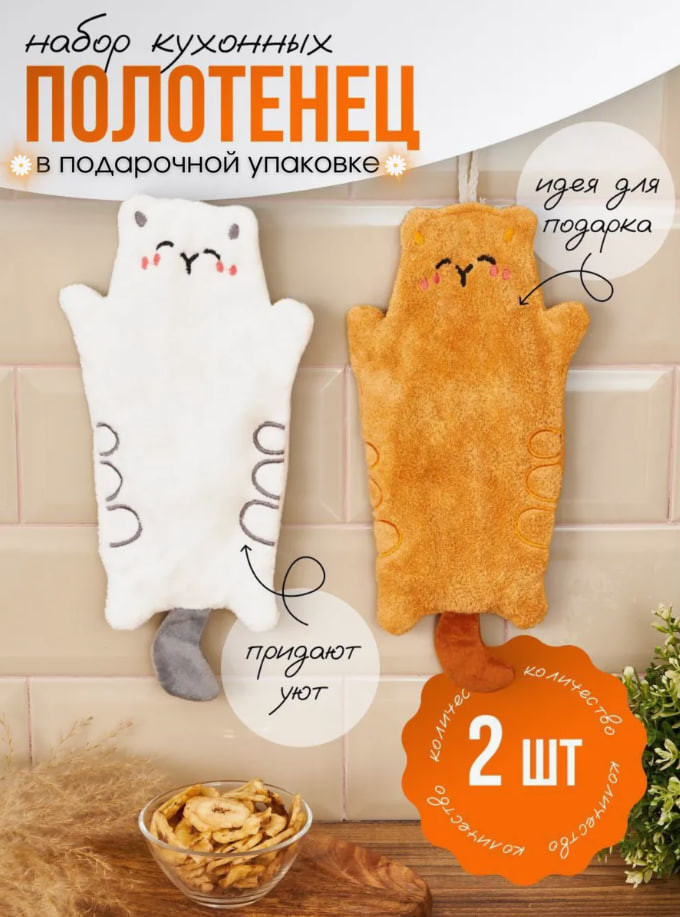 Набор кухонных полотенец из микрофибры-17% +36 мягкие красивые котики