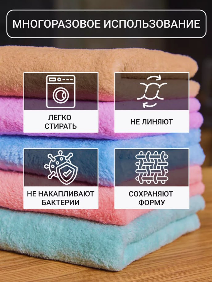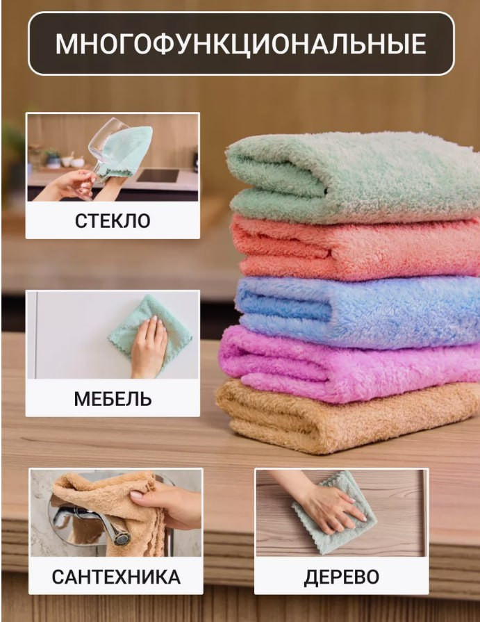 💳 Оплатить за товар можно при получении 🇰🇿 Есть бесплатная доставка по Казахстану 🎁 Копите бонусы с каждой покупки Набор кухонных тряпок размером 24×24 см — это универсальное и выгодное решение для дома. Плотные (260 г/м²), безворсовые салфетки пастельных оттенков не впитывают запахи, отлично впитывают влагу, быстро сохнут и легко отстирываются. Подходят для сухой и влажной уборки, мытья посуды, окон, зеркал, экранов, сантехники и даже автомобиля благодаря антистатическому эффекту. Мягкие и прочные, они не оставляют разводов, ворса и царапин, а за счёт цвета можно использовать каждую тряпочку по назначению. Удобны в использовании даже для ребёнка. Практичный и эстетичный набор, который станет отличным подарком для любой хозяйки. |