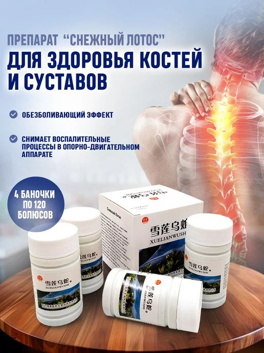 Снежный лотос для суставов, для позвоночника, от остеохондроза, от артрита 480 штук (4 упаковки по 120 шариков) восстанавливает суставы, помогает после травм. Китайский препарат восстанавливает подвижность суставов, обезболивает и снимает воспаления. Эффективное натуральное средство для профилактики и восстановлении при ревматизме, артрите, межпозвоночной грыже и других заболеваний опорно-двигательного аппарата.