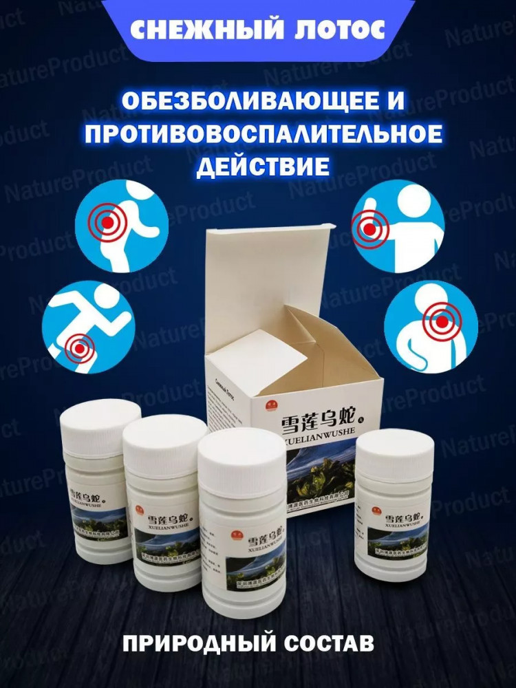 Снежный лотос (Xuelianwushe) показан при вывихах и растяжениях мышц. Успешно и результативно восстанавливает подвижность костно-суставной системы. Обладает природным составом, оказывающим обезболивающее и противовоспалительное действие.