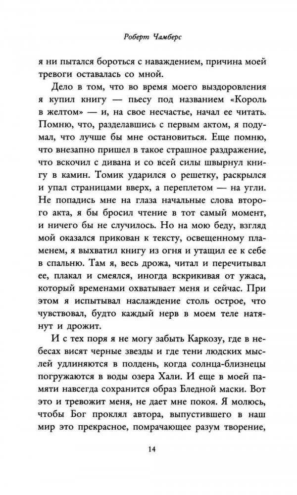 💳 Оплатить за товар можно при получении 🇰🇿 Есть бесплатная доставка по Казахстану от 1 дня 🎁 Копите бонусы с каждой покупки Серия: Metamorphoses-mini Поговаривают, что есть пьеса, которая оставляет после прочтения только безумие и печаль. Она искушает тех, кто ее читает, навлекая странные видения и приводя к отчаянию. Это «Король в желтом». Тревожные истории этого сборника связаны между собой и пронизаны присутствием Короля в желтом. А герои, соприкоснувшиеся с запрещенной пьесой, познают все тайны сверхъестественного. Культовая классика викторианско-готического ужаса, вдохновившая многих авторов, от Г. В. Лавкрафта до создателей сериала «Настоящий детектив». |