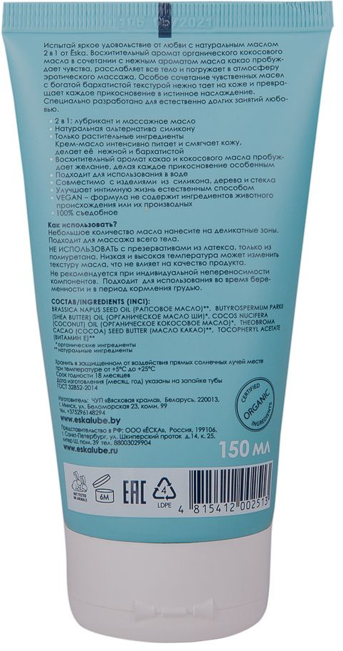 Eska Массажное масло и лубрикант 2-в-1 на масляной основе
