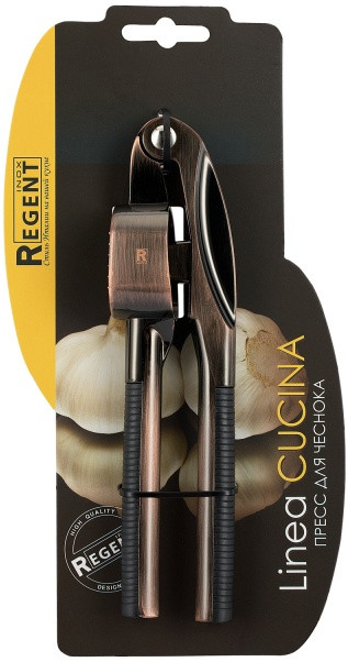Серия: Cucina Пресс для чеснока Regent inox, благодаря простой и надежной конструкции, позволяет без особых усилий измельчить дольки чеснока без остатка. После использования отверстия легко очищаются. Материал изготовления: высококачественный цинковый сплав с медным покрытием. Удобная нескользящая ручка с вставками из пластика, с покрытием Soft Touch. |