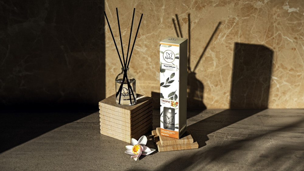 Элегантный дизайн и использование натуральных материалов делает его по настоящему стильным элементом интерьера, который впишется в любой, даже самый изысканный интерьер, так как флакон диффузора для дома имеет универсальный дизайн. Ароматический диффузор с палочками представляет собою стеклянную емкость с ароматной жидкостью объемом 100 мл, с логотипом бренда. Стойкая формула аромата позволяет более 90 дней наслаждаться его запахом, ненавязчиво создавая фоновый запах в помещении. Специальные фибровые палочки максимально впитывают премиум арома-масла, за счет чего аромат для дома имеет большой диапазон рассеивания и позволяет наслаждаться утонченным насыщенным парфюмом продолжительное время. Насыщенность можно скорректировать, убрав или добавив палочки. Их нужно переворачивать каждые 2-3 дня для сохранения концентрации ароматических паров. Парфюм для дома от Papilion позволяет создать свою уникальную атмосферу, так как линейка наших ароматов поражает своим разнообразием, от цветочных и фруктовых нот до древесных и пряных ароматов — выбор только за Вами. Насыщайте воздух любимыми ароматами, создавайте незабываемые впечатления и вдохновляйте всех, кто рядом с Вами.