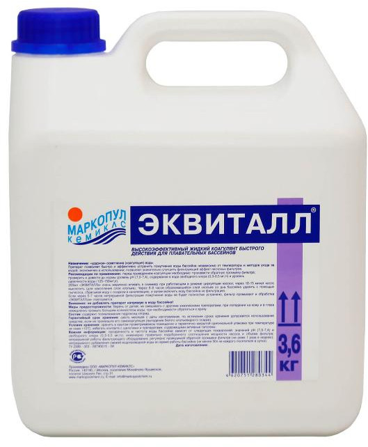 Эквиталл — коагулянт, созданный на основе полиоксихлорида алюминия, обладает ячеистой «изломанной» структурой, что позволяет в сжатые сроки: от трех до двенадцати часов осаждать любые посторонние примеси и взвеси (в том числе образовавшиеся и после борьбы с водорослями).
