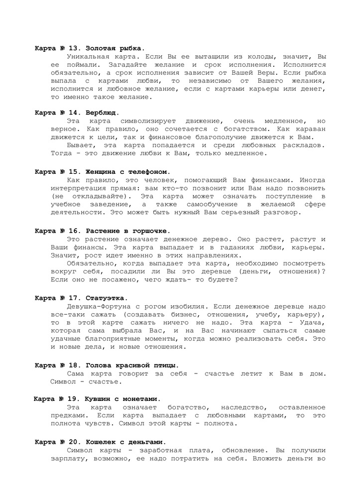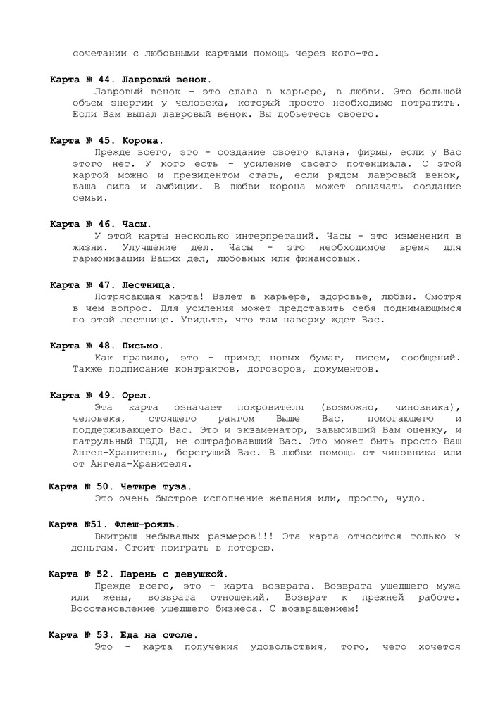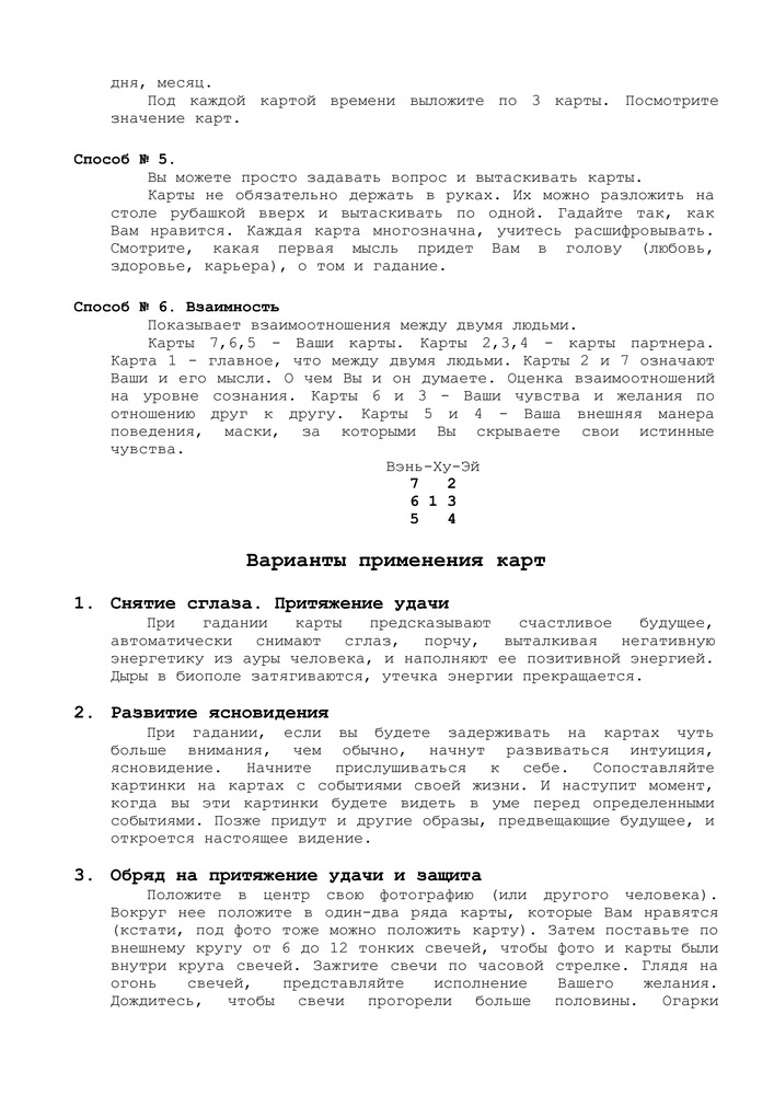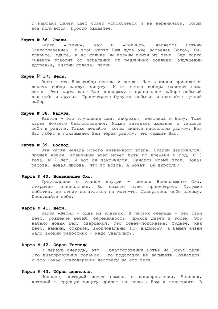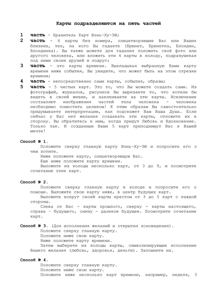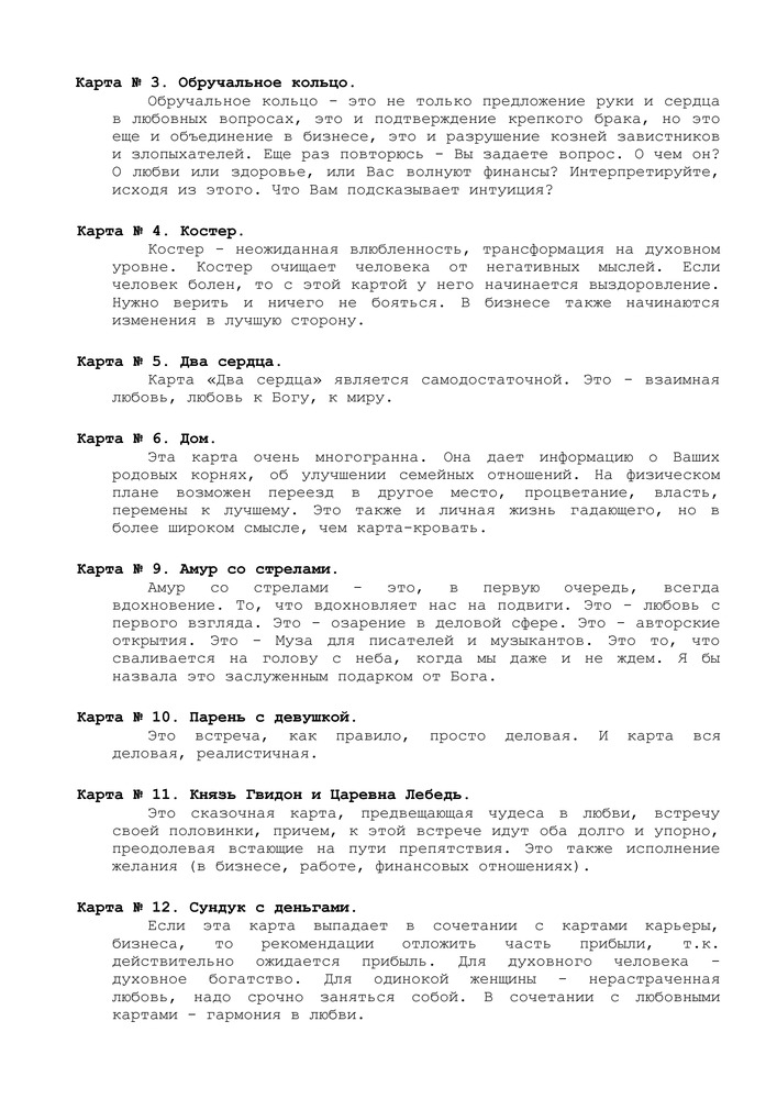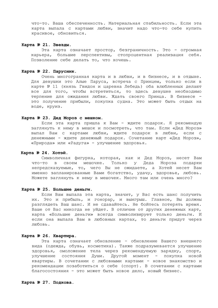 Сами карты мне очень понравились и идея отличная, но инструкция к ним какая-то несерьёзная, очень бедно описано само гадание и значение карт, а о качестве книжки и говорить не хочется, очень мелко и бледно напечатано, как будто на ксероксе размножали, а жаль. Я бы покупала их в подарок близким, но книжечка не серьёзная. Из-за неё и снизила оценку.