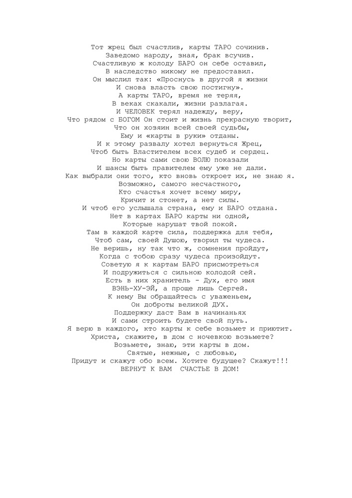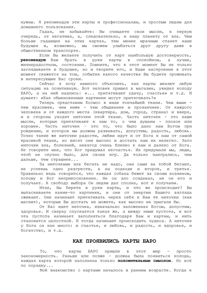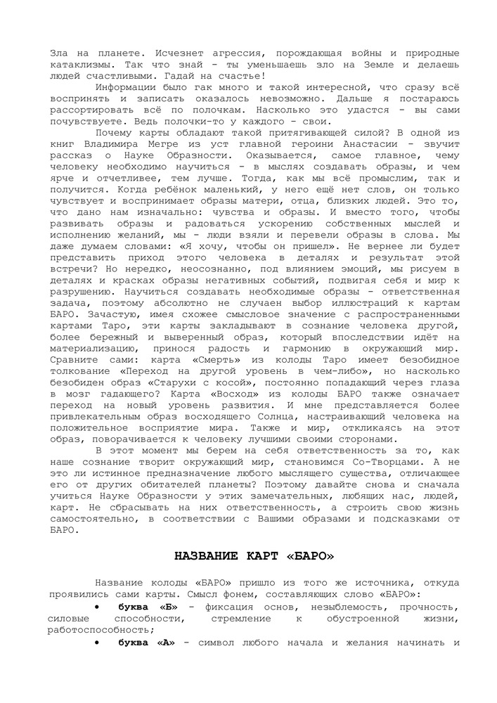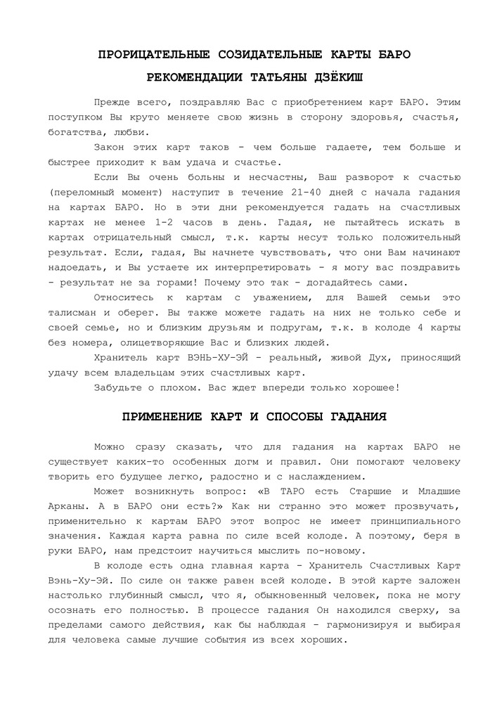 💳 Оплатить за товар можно при получении 🇰🇿 Есть бесплатная доставка по Казахстану от 1 дня 🎁 Копите бонусы с каждой покупки Нет в картах БАРО карты ни одной, которые нарушат душевный твой покой. Там в каждой карте сила, поддержка для тебя. Чтоб сам, своей Душою, творил ты чудеса. Не веришь, ну так что ж, сомнения пройдут, когда с тобою сразу чудеса произойдут. При гадании: притягивают удачу, счастье, любовь, досттаток, здоровье; автоматически снимает сглаз, порчу; предсказывают счастливое будущее; оберегают семью; открывают ясновидение. |