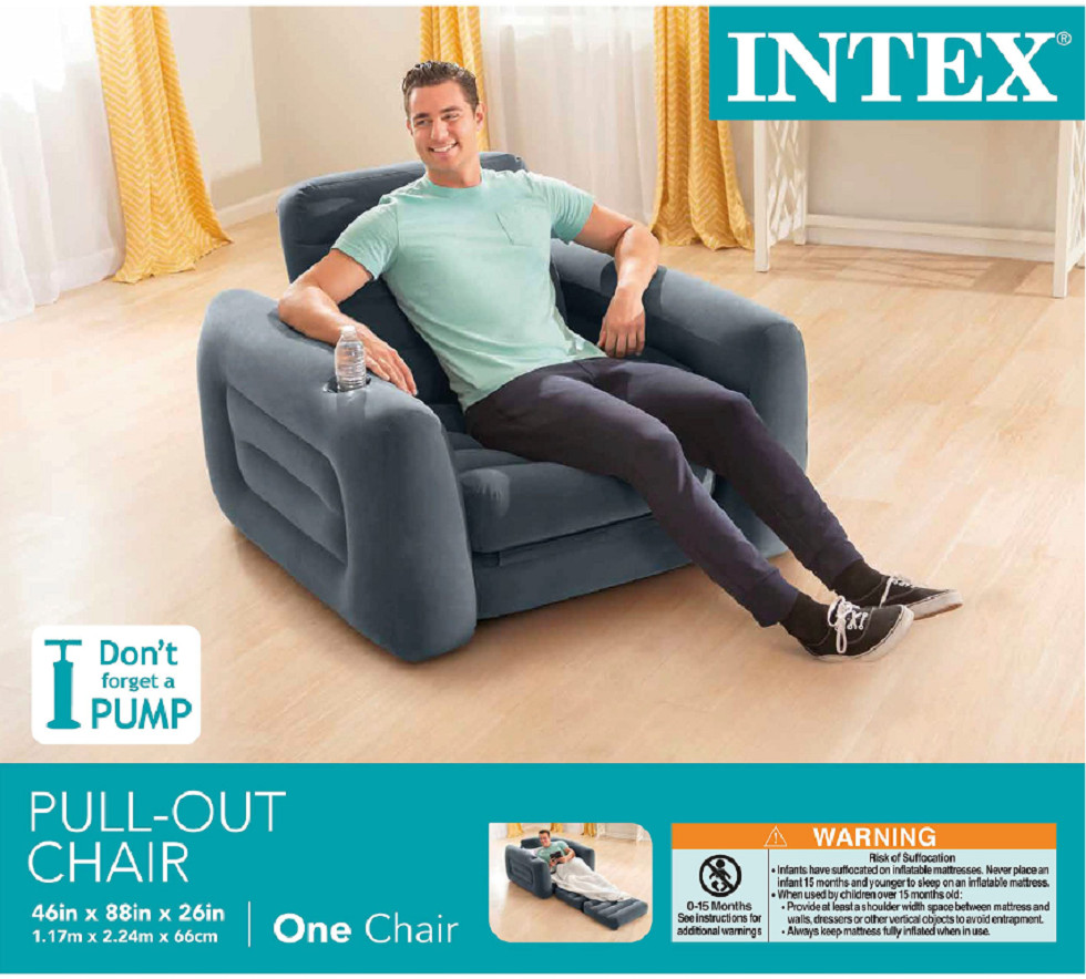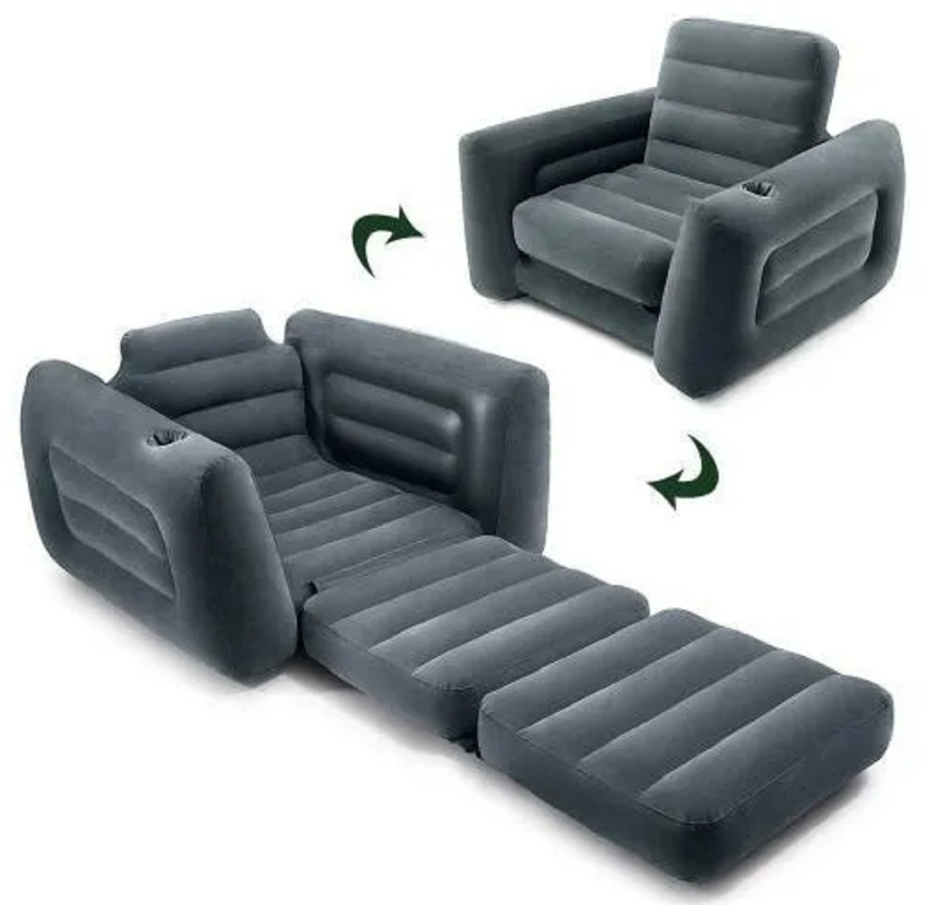Intex Кресло-трансформер надувноеВ данный момент этот товар отсутствует в продаже. Возможно, у нас найдется аналогичный или похожий товар здесь. Кресло-трансформер «Pull-Out Chair» — компактная модель 2 в 1. Используйте его как кресло или разложите в односпальную кровать. Такое изделие сэкономит не только место в малогабаритной квартире, но и деньги. Надуть или сдуть изделие не составит труда с помощью клапана с широким отверстием. Расположите кресло-трансформер дома или наслаждайтесь комфортным досугом на природе. |