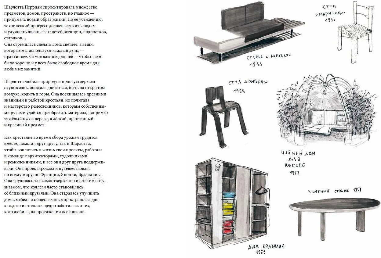 Шарлотта хочет, чтобы все жили хорошо, чтобы не было кварталов лучших и худших, чтобы в дома проникали свет и воздух, чтобы они находились подальше от машин... Париж в 1903 году был очень современным городом и самым популярным среди художников — тогда и родилась Шарлотта Перриан. Отличная спортсменка и любительница музыки, она с детства размышляла о пустоте, как пространстве, которое способно вместить всё, и архитектуре, позволяющей воплотить в реальность любые, даже самые смелые замыслы. |