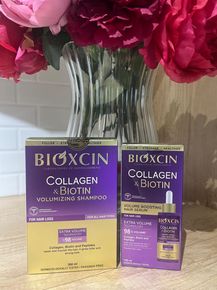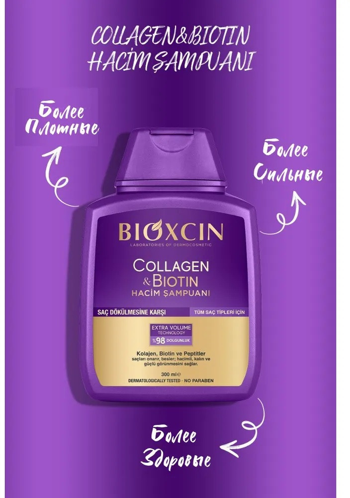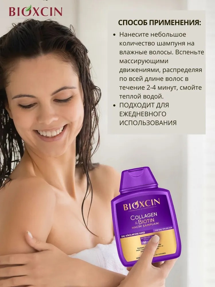 Шампунь: aqua (water), sodium laureth sulfate, cocamidopropyl betaine, biocomplex b11 (крапива жгучая, крапива двудомная, ромашка, тысячелистник, плоды рожкового дерева, хвощ), sodium chloride, decyl glucoside, parfum (fragrance), glycol distearate, carbomer, biotinoyl tripeptide-1, benzyl alcohol, dimethiconol, biotin, hydrolyzed collagen и др.