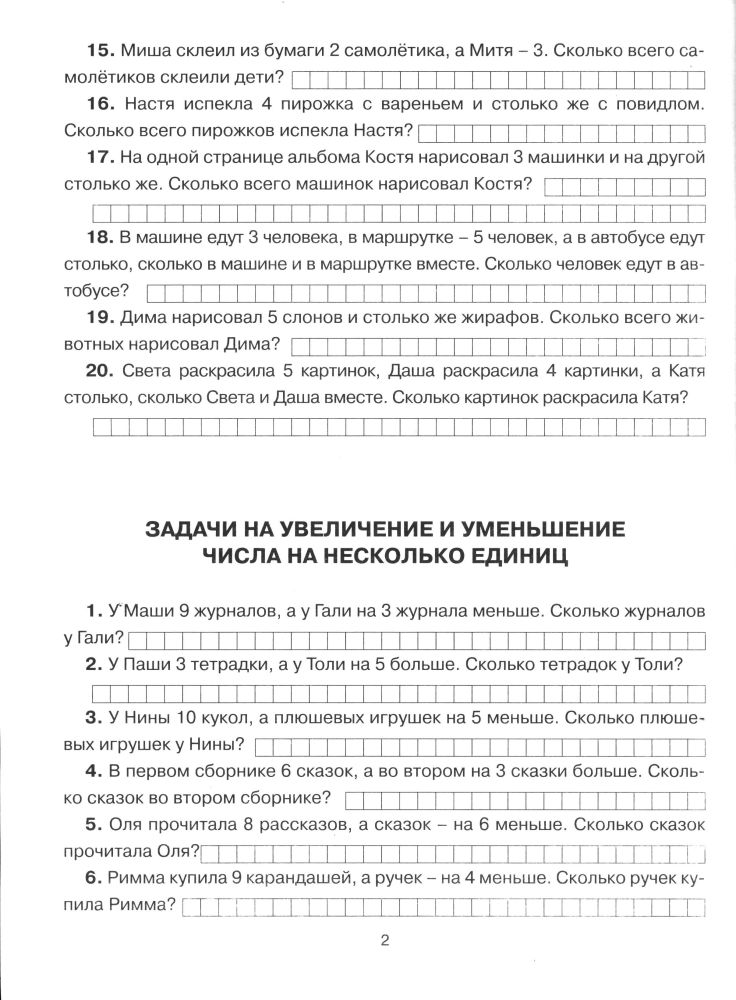 Хорошая, удобная для использования книга. Моя дочка - дошкольница, нам условие задачи писать не надо, главное его понять. Помогает поддерживать в форме навыки счета.