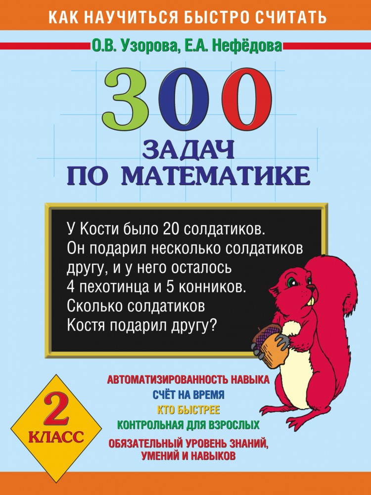 300 задач по математике: 2 классОльга Васильевна Узорова, Елена Алексеевна Нефедова В данный момент этот товар отсутствует в продаже. Возможно, у нас найдется аналогичный или похожий товар здесь. Серия: Как научиться быстро считать Пособие содержит 300 задач по математике для 2 класса. |