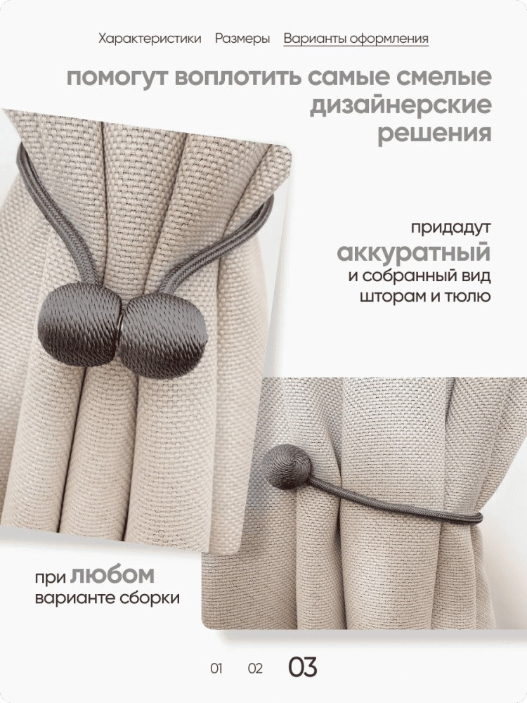 Комплект подхватов для штор на магните