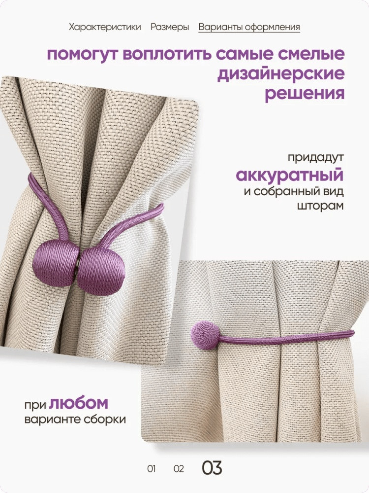 Комплект подхватов для штор на магните