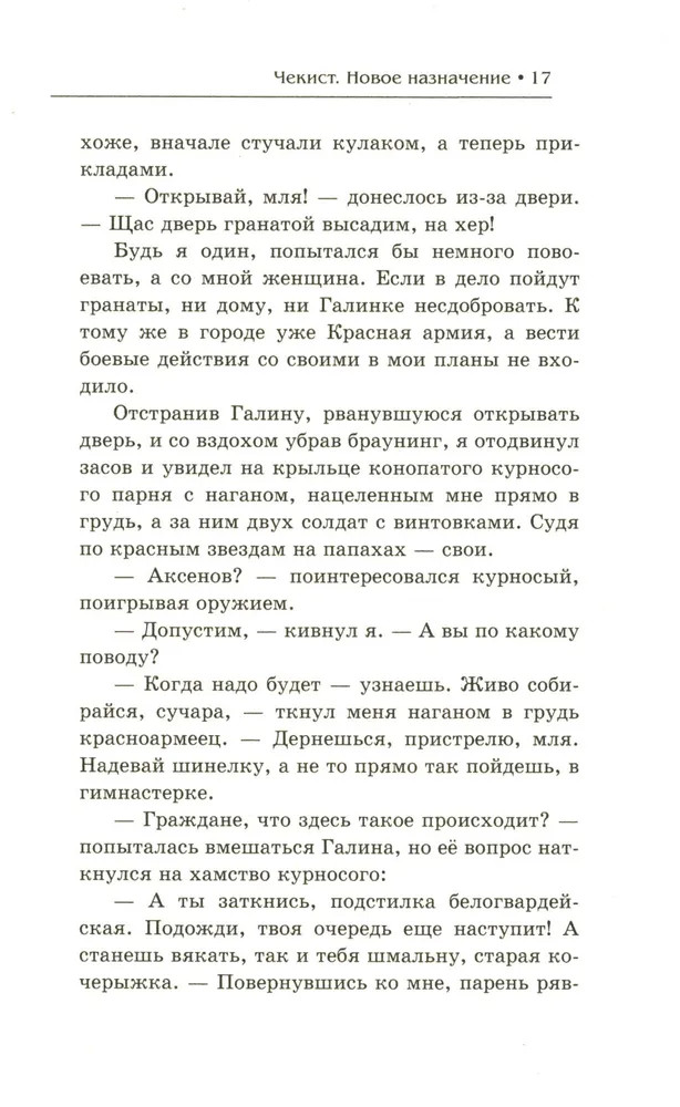 💳 Оплатить за товар можно при получении 🇰🇿 Есть бесплатная доставка по Казахстану от 1 дня 🎁 Копите бонусы с каждой покупки Серия: Исторический детектив Интервенты выбиты из Архангельска, но враги далеко не побеждены. Враги затаились и ждут удобного момента, чтобы всадить нож в тело молодой советской власти — как в переносном, так и в самом прямом смысле. Возглавить борьбу с засевшими в Архангельске внутренними врагами предстоит ему — Владимиру Аксенову. Он теперь уже не рядовой чекист-разведчик, а, несмотря на молодость, почти всемогущий начальник архангельской ЧК, да еще и Председатель правительственной комиссии по расследованию злодеяний интервентов и белогвардейцев на Севере. Что жизнь не облегчает, скорее, делает опасней. А тут еще и из Москвы приходит вызов, что, как известно, никогда ничего хорошего не предвещает... |