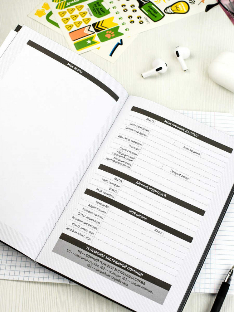 💳 Оплатить за товар можно при получении 🇰🇿 Есть бесплатная доставка по Казахстану от 1 дня 🎁 Копите бонусы с каждой покупки Современный школьный планинг — стильный и удобный инструмент для планирования учебных и внеучебных дел. Выполнен в мягком переплёте из искусственной кожи «Наппа» с лаконичным декором — шелкографией в одну краску. Внутренний блок на 80 листов из белого офсета (70 г/м²) с печатью в две краски дополнен универсальной шпаргалкой, окрашенным срезом и двумя листами с наклейками, упакован в индивидуальный ПЭТ-пакет с промостикером. |